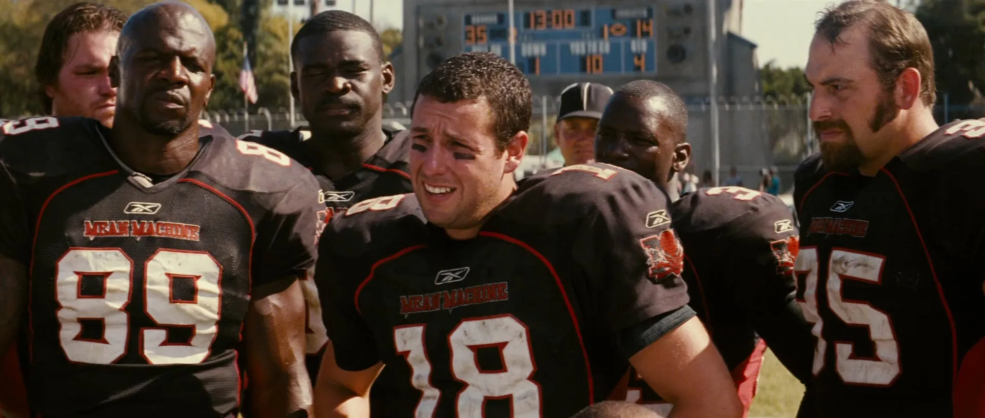 Cast: Adam Sandler as Paul Crewe, Chris Rock as Caretaker, James Cromwell as Warden Hazen, Burt Reynolds as Coach Nate Scarborough, Nelly as Megget, William Fichtner as Captain Knauer, David Patrick Kelly as Unger, Tracy Morgan as Ms. Tucker, Cloris Leachman as Lynette, Michael Irvin as Deacon Moss, Bill Romanowski as Guard Lambert, Brian Bosworth as Guard Garner, Terry Crews as Cheeseburger Eddy, Nicholas Turturro as Brucie, Bill Goldberg as Battle, Kevin Nash as Guard Engleheart, Steve Austin as Guard Dunham, Bob Sapp as Switowski, Steve Reevis as Baby Face Bob, Lobo Sebastian as Torres, Dalip Singh as Turley, Joey Diaz as Big Tony, Edward Bunker as Skitchy Rivers, Michael Papajohn as Guard Papajohn, Conrad Goode as Guard Webster, Brandon Molale as Guard Malloy, Todd Holland as Guard Holland, Walter Williamson as Errol Dandridge, Allen Covert as Referee, Rob Schneider as Punky, Chris Berman as Himself, Jim Rome as Himself, Patrick Bristow as Walt, Lauren Sánchez as Herself, Dan Patrick as Officer Jack Pugh, Christopher Neiman as Big Ear Cop, Ed Lauter as Duane, Sean Salisbury as Vic, Rob "Revolution" Moore as Gavin, Big Boy as Jesse, Michael H. Goodwyn as Con Transvestite, Ray Stoney as Con Transvestite, Michael Silas as Con Transvestite, Andre Fuentes as Con Transvestite, Lonnie Henderson as Con Transvestite, Asiel Hardison as Con Transvestite, Colin Kim as Con Transvestite, Mark Robert Ellis as Stretcher Guy, Timothy F. Crowley as Umpire, Mr. Porter as Basketball Convict, Bizarre as Basketball Convict, Proof as Basketball Convict, Kuniva as Basketball Convict, Swift as Basketball Convict, Bryan Burwell as Sportswriter, Sam Farmer as Sportswriter, Jay Glazer as Sportswriter, Peter King as Sportswriter, John McClain as Sportswriter, Adam Schefter as Sportswriter, Larry Weisman as Sportswriter, Marc S. Ganis as Lorenzo, Shane Ralston as Bradlee, Jenae Altschwager as Party Guest, Candace Juleff as Party Guest, Bryan Ross as Party Guest, Ricardo J. King as Press Box Technician, Stink Fisher as Cafeteria Prisoner, Jasper Pendergrass as Cafeteria Prisoner, Sean McNamara as Cafeteria Prisoner, Robert Harvey as Cafeteria Guard, Eric Chmielecki as Guard Sniper, Denise Marie Jerome as Guard Cheerleader, Jaayda McClanahan as Guard Cheerleader, Tara Wilson as Guard Cheerleader, Rachel Saydak as Guard Cheerleader, Cara-Lee Knodel as Guard Cheerleader, Nora Hassan as Guard Cheerleader, John Hockridge as Guard Hock, Courteney Cox as Lena (uncredited), Jason Williams as Texas State Policeman (uncredited)